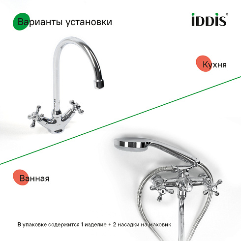 Комплект совместим не только со смесителями IDDIS®, но и с большинством моделей других производителей.
