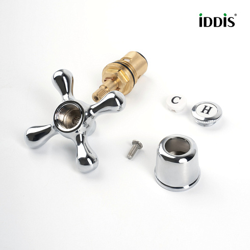 Керамическая кран-букса с универсальной сменной ручкой крестообразной формы в комплекте. Готовое решение для замены элементов управления в двухзахватном смесителе.