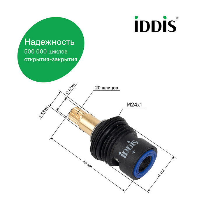 Кран-букса для смесителя с корпусом из сверхпрочного пластика (полиамида) – инновационное решение в линейке водозапорных механизмов IDDIS®.