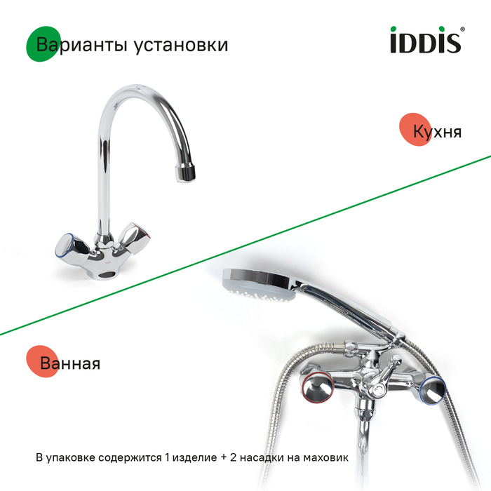 Комплект совместим не только со смесителями IDDIS®, но и с большинством моделей других производителей.