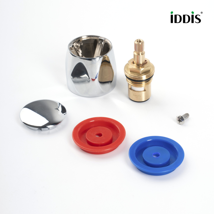 Керамическая кран-букса с универсальной сменной ручкой классической круглой формы в комплекте. Готовое решение для замены элементов управления в двухзахватном смесителе.