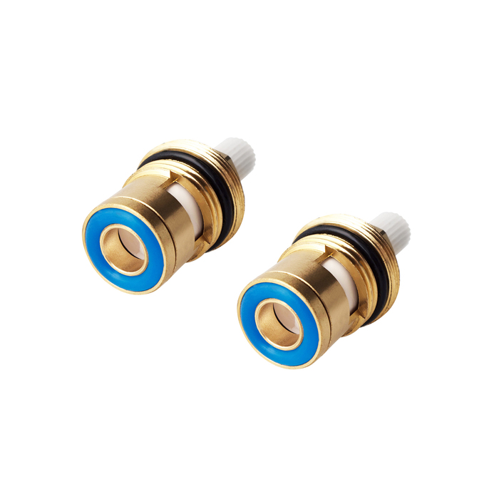 Комплект керамических кран-букс с углом поворота 90°.