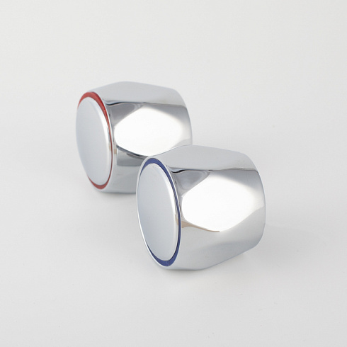 Универсальные сменные ручки для двухзахватного смесителя классической круглой формы. Размер штока кран-буксы – 8х24. Комплект из 2 штук.