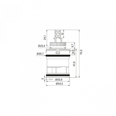 Картридж IDDIS® (Ø35 мм) для управления расходом и температурой воды, подаваемой из смесителя. Позволяет осуществить максимально мягкий и точный контроль благодаря большому углу поворота (100°) и плавной работе движущего механизма изделия. Картридж IDDIS® работает надежно и бесшумно, обеспечивая комфортный поток воды в любой среде, в том числе в условиях ремонта водопроводных сетей. Модель устойчива к перепадам температуры и давления, абсолютно безопасна даже при длительном контакте с водой.