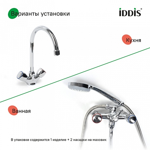 Комплект совместим не только со смесителями IDDIS®, но и с большинством моделей других производителей.