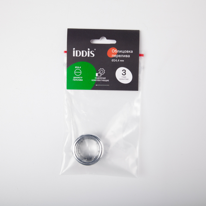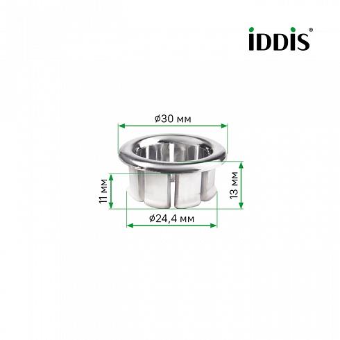 • Подходит к умывальникам IDDIS® и умывальникам других производителей с переливным отверстием диаметром 24,4 мм.