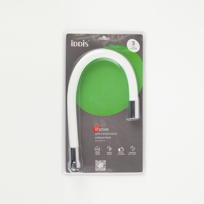Гибкий высокий (50 см) излив IDDIS® предназначен для подачи поступающей из смесителя воды. Изгибаясь под любым углом, он направляет струю в любую нужную сторону, что делает смеситель особенно удобным для использования на кухне. Изделие отличается своей долговечностью и безопасностью даже при длительном контакте с водой благодаря качественному силикону, который используется при производстве. Матовый белый излив выполнен в современном стиле – он идеально впишется в пространство кухни городской квартиры или загородного дома. Модель представлена в нескольких цветах и подходит для комплектации новых или замены изношенных элементов смесителей.