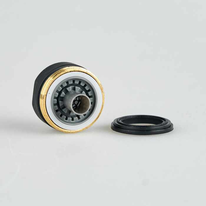 Встраиваемый аэратор IDDIS® представляет собой сетчатую насадку на смеситель, предназначенную для насыщения воды кислородом без заметного снижения напора струи. Данная модель оснащена двумя независимыми встроенными каналами: один для обычной водопроводной воды, второй — для чистой фильтрованной. Излив с таким аэратором будет выглядеть эстетичнее, чем утолщенная модель с двумя аэраторами установленными последовательно. Двухканальный аэратор так же поможет избежать дополнительных отверстий в столешнице или кухонной мойке, обеспечив экономию кухонного пространства. Модель подходит для комплектации кухонных смесителей IDDIS® с резьбой крана диаметром 22 мм.