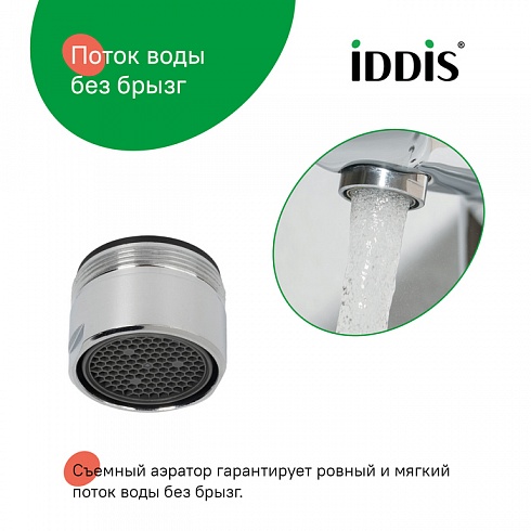 Аэратор IDDIS® представляет собой сетчатую насадку на смеситель, предназначенную для насыщения воды кислородом без заметного снижения напора струи. Рисунок нижней сетки типа «соты» обеспечивает высокую шумоизоляцию и лучшее распределение потока, не позволяя брызгам воды заливать пространство вокруг. Аэратор IDDIS® дает возможность улучшить качество воды за счет фильтрации крупных нежелательных частиц и примесей, сделать ее менее хлорированной. Модель подходит для комплектации смесителей для ванны любых производителей с внутренней резьбой крана диаметром 28 мм. Корпусный аэратор имеет декоративный внешний вид и устанавливается с помощью гайки (входит в комплект).