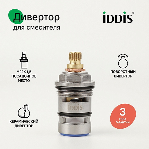 Поворотный дивертор IDDIS® с резьбой М22х1,5 предназначен для перенаправления водного потока с излива смесителя на лейку за счет изменения положения внутреннего механизма путем поворота ручки в нужную сторону. Модели с деталями из керамики являются наиболее востребованными – они позволяют сделать водные процедуры ощутимо комфортнее: надежно и плавно переключая поток воды даже при минимальном давлении в трубах. Изделие адаптировано к воде любого качества и рассчитано на повышенную нагрузку, в том числе в условиях эксплуатации при сильных гидроударах.