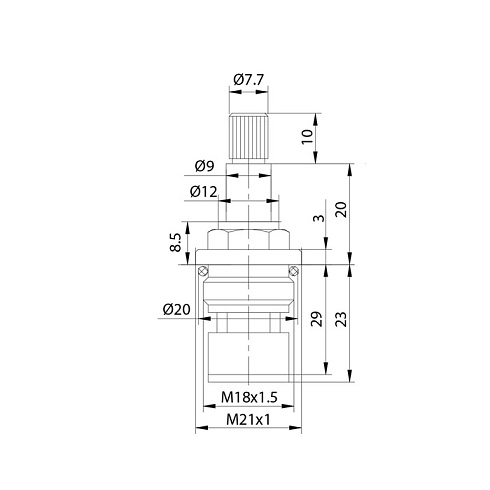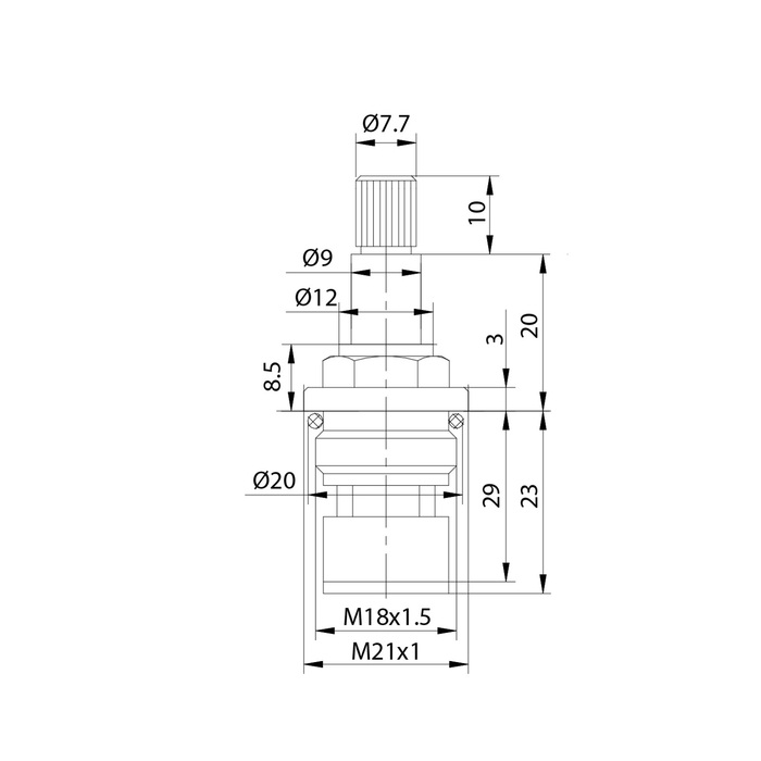 Керамическая кран-букса во втором по популярности посадочном размере – M18x1,5, с углом поворота 90°.