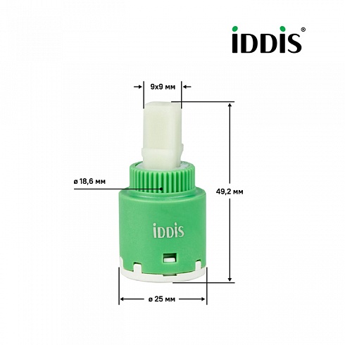 Низкий картридж IDDIS® стандартного диаметра (25 мм) для экономичного управления расходом и температурой воды, подаваемой из смесителя. Позволяет осуществить максимально мягкий и точный контроль благодаря большому углу поворота (90 градусов) и плавной работе движущего механизма изделия. Картридж IDDIS® работает надежно и бесшумно, обеспечивая комфортный поток воды в любой среде, в том числе в условиях ремонта водопроводных сетей. Изделие устойчиво к перепадам температуры и давления, абсолютно безопасно даже при длительном контакте с водой.