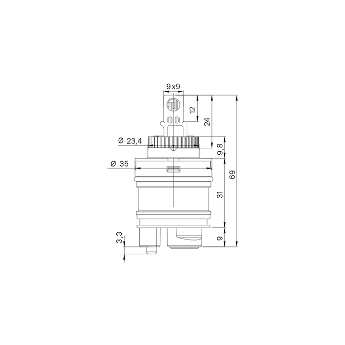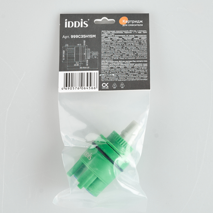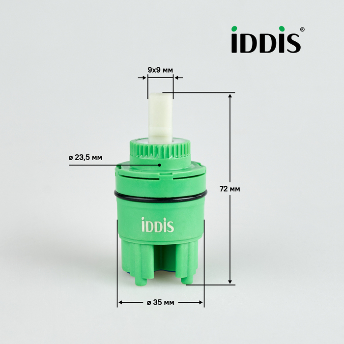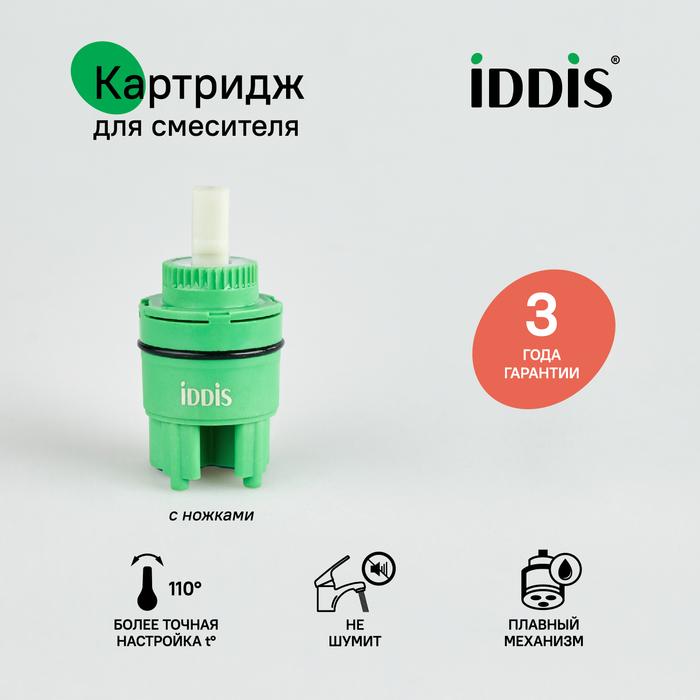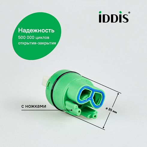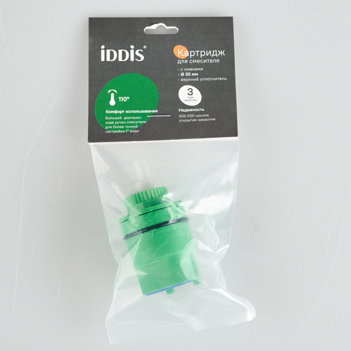Высокий картридж IDDIS® стандартного диаметра (35 мм) для экономичного управления расходом и температурой воды, подаваемой из смесителя. Позволяет осуществить максимально мягкий и точный контроль благодаря большому углу поворота (110 градусов) и плавной работе движущего механизма изделия. Картридж IDDIS® работает надежно и бесшумно, обеспечивая комфортный поток воды в любой среде, в том числе в условиях ремонта водопроводных сетей. Изделие устойчиво к перепадам температуры и давления, абсолютно безопасно даже при длительном контакте с водой. В верхней части картриджа есть уплотнительное кольцо для создания герметичного соединения со смесителем.