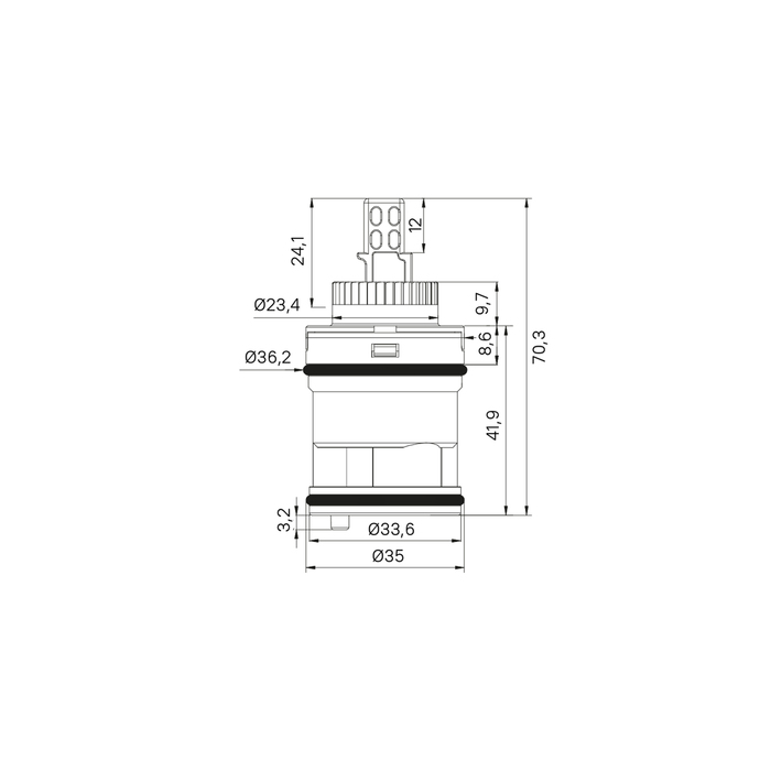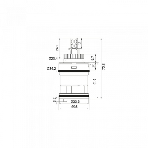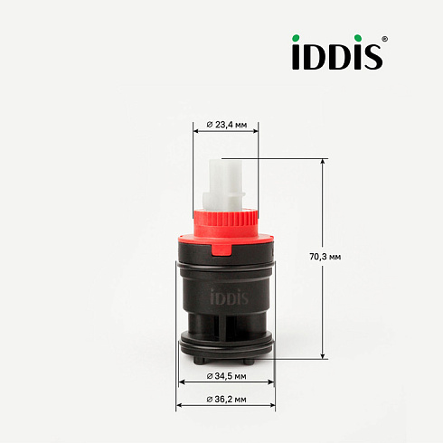Картридж IDDIS® (Ø35 мм) для управления расходом и температурой воды, подаваемой из смесителя. Позволяет осуществить максимально мягкий и точный контроль благодаря большому углу поворота (100°) и плавной работе движущего механизма изделия. Картридж IDDIS® работает надежно и бесшумно, обеспечивая комфортный поток воды в любой среде, в том числе в условиях ремонта водопроводных сетей. Модель устойчива к перепадам температуры и давления, абсолютно безопасна даже при длительном контакте с водой.