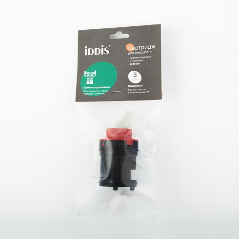 • Картридж IDDIS® подходит для комплектации новых или замены изношенных элементов смесителей. Его монтаж осуществляется прямым подключением подводки.