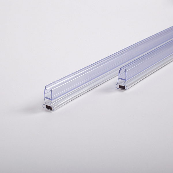Магнитные уплотнители для душевой кабины из полупрозрачного силикона. Подходят для стекол толщиной 7-8 мм. Комплект из 2 штук.