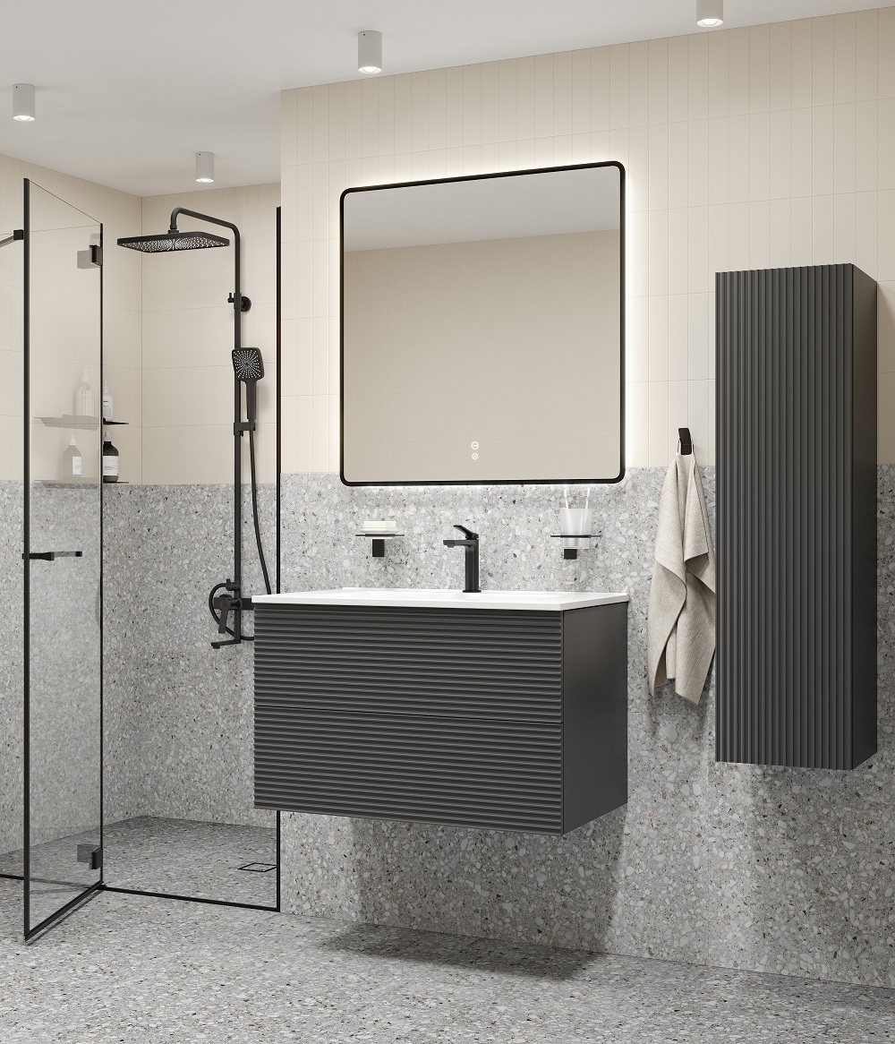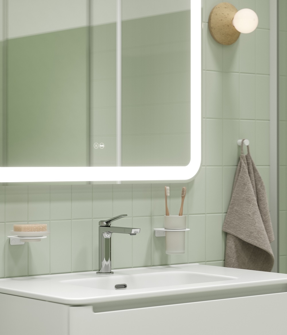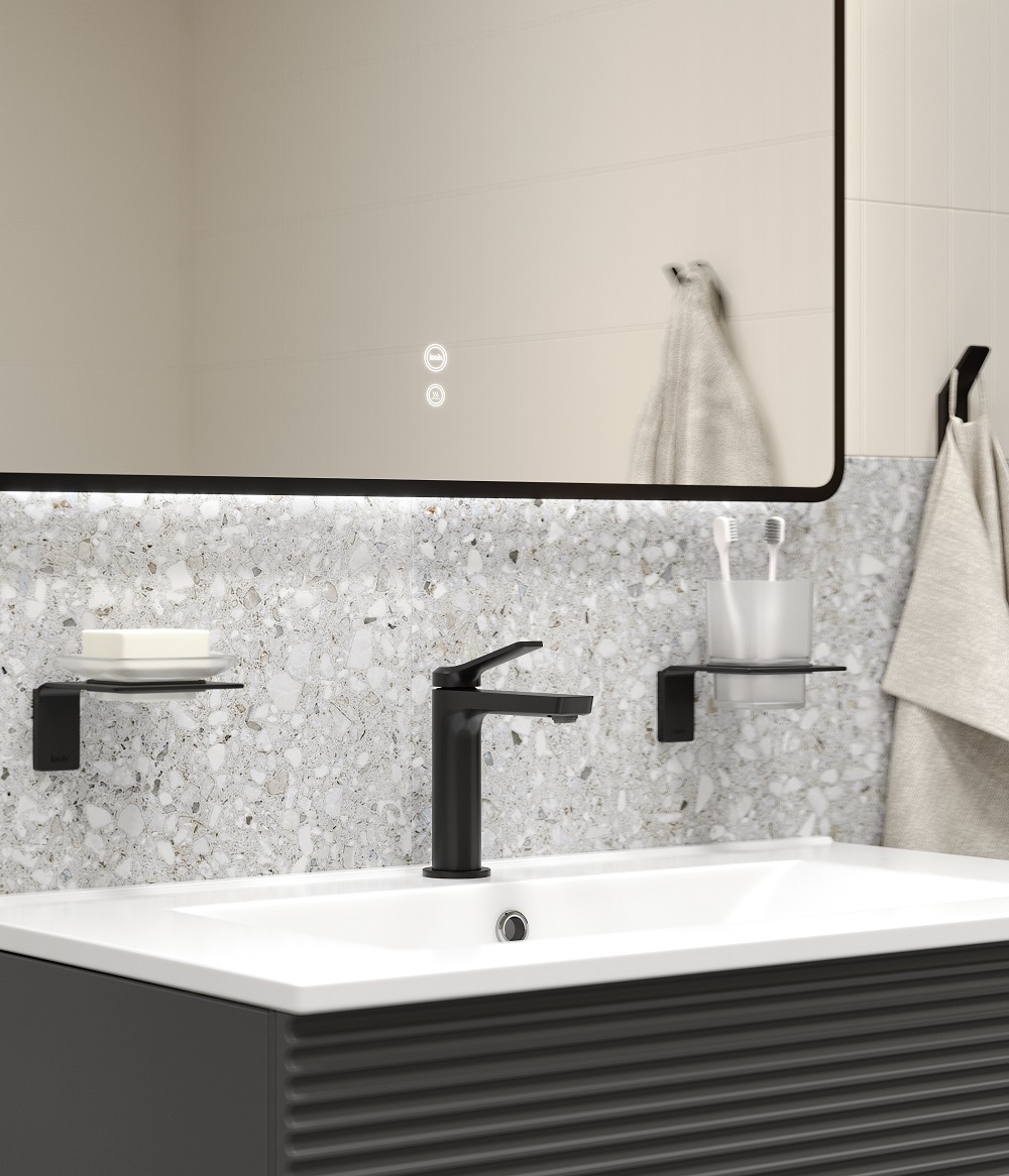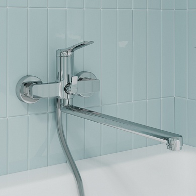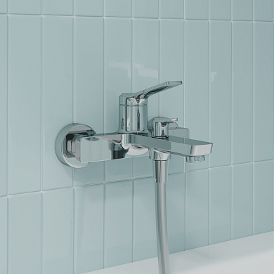 Практичные и стильные смесители с четкими формами и гранями. Ручка изящно смотрит вверх под углом, освобождая под собой место для удобного захвата. Акцент коллекции – необычный рисунок в виде паутинки из форсунок на лейках душевой системы.