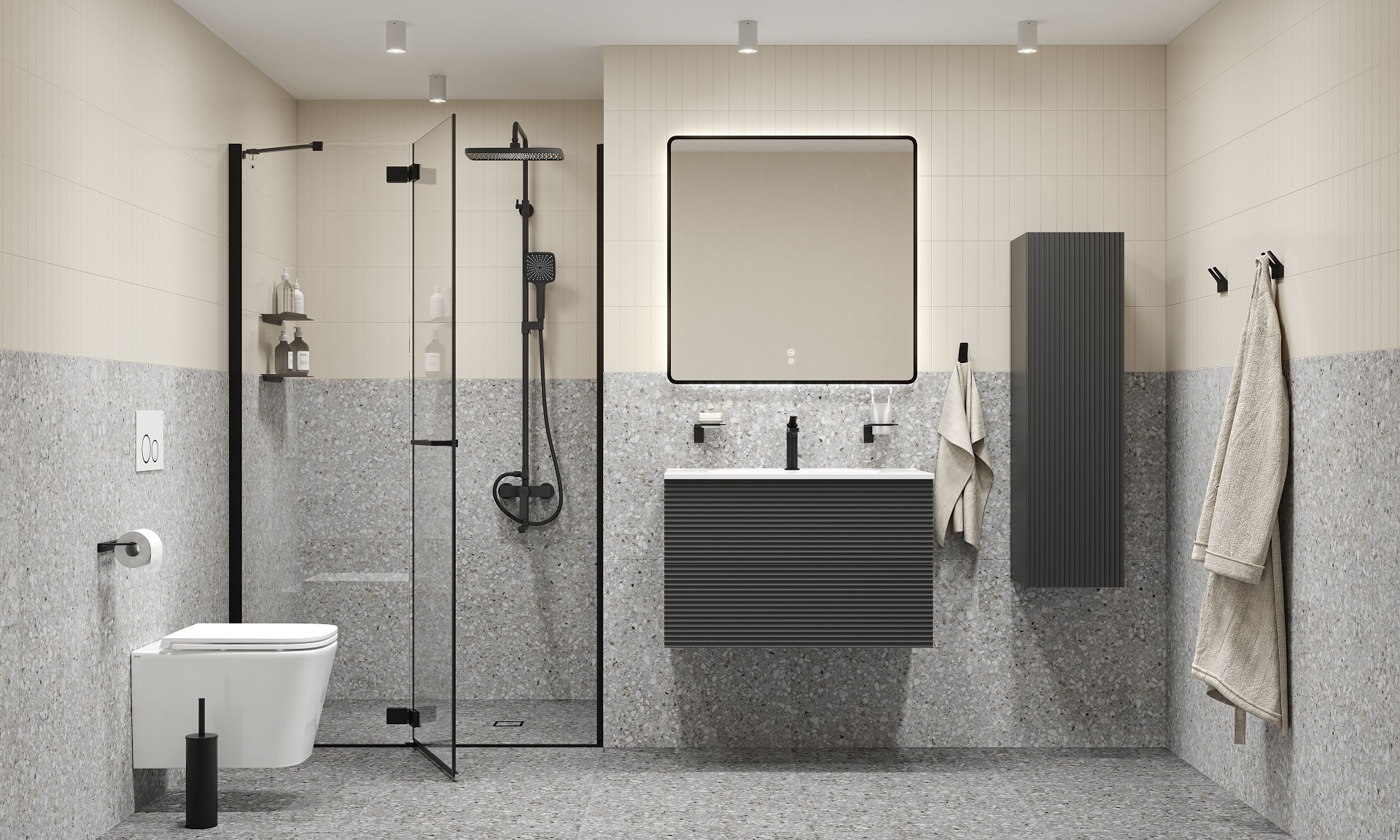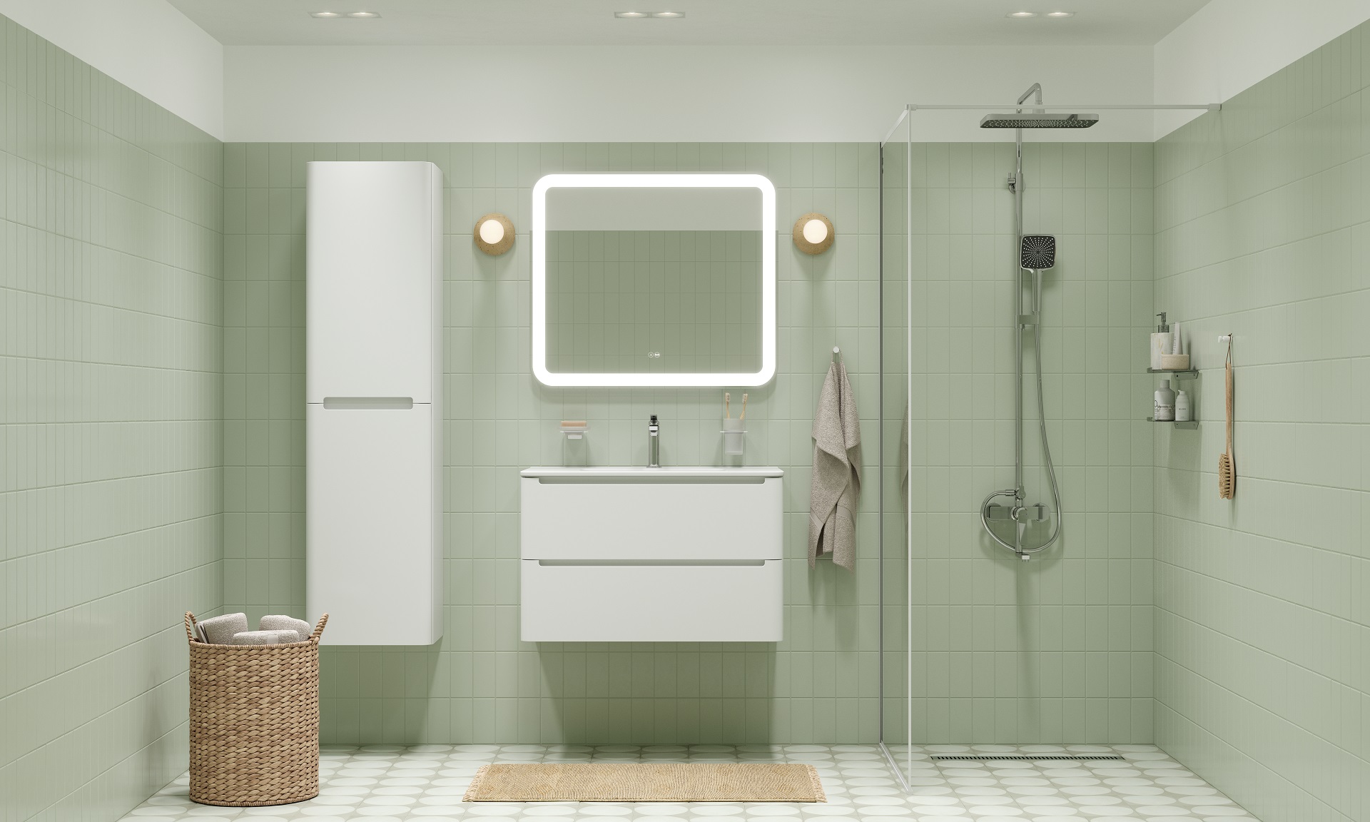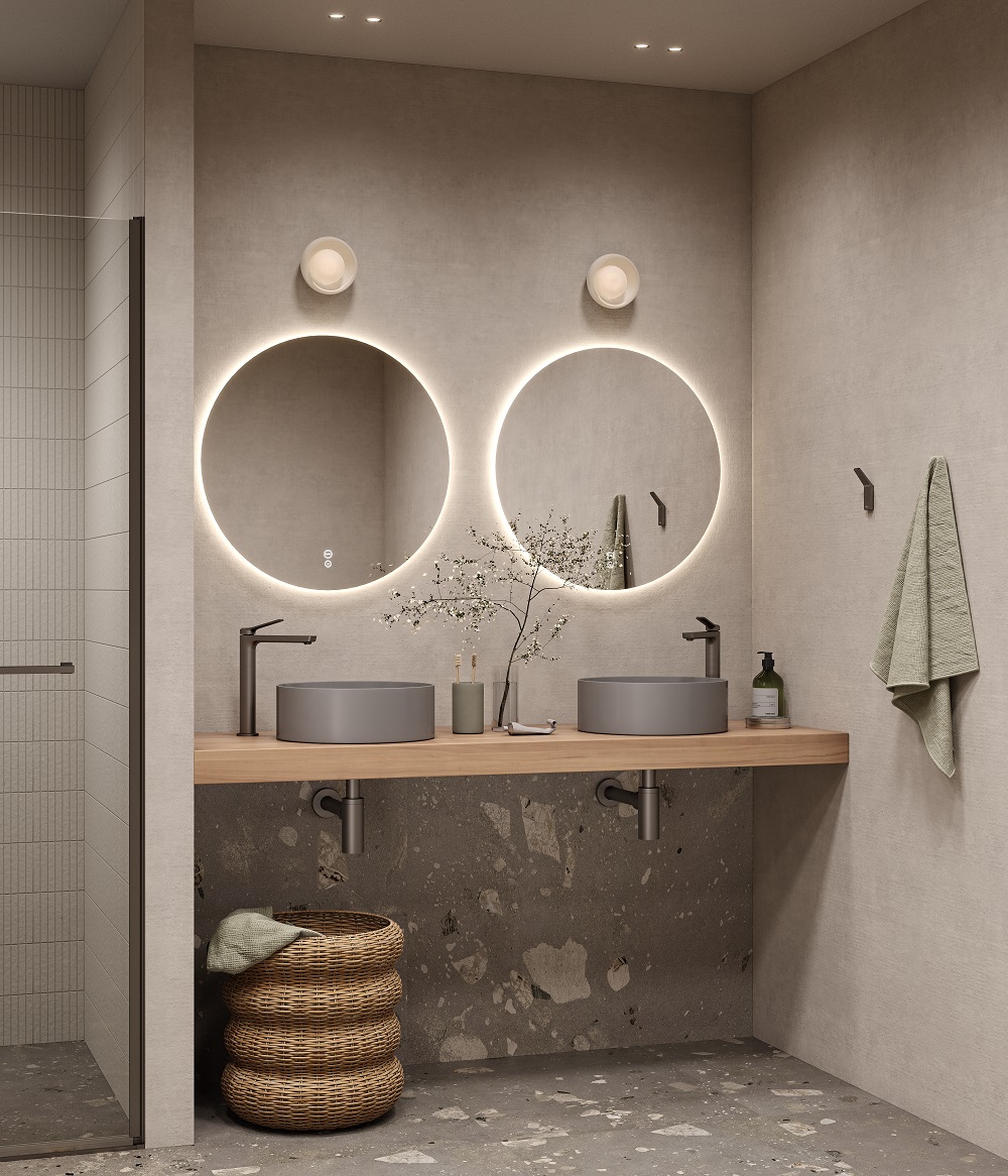 Практичные и стильные смесители с четкими формами и гранями. Ручка изящно смотрит вверх под углом, освобождая под собой место для удобного захвата. Акцент коллекции – необычный рисунок в виде паутинки из форсунок на лейках душевой системы.