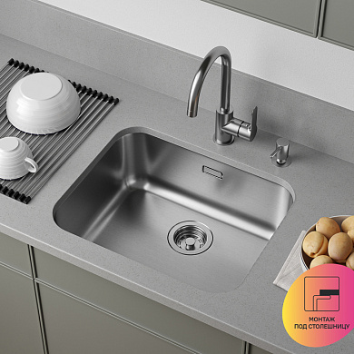 Простое универсальное решение для современной кухни по привлекательной цене. Востребованный размер: компактная мойка поместится в любой, даже самый небольшой кухонный гарнитур.