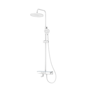 Островок безмятежности в городской квартире. Несмотря на контрасты в мебели и рисунке крупноформатной плитки, палитра, скорее, нежная и спокойная – за счет большого объема белого цвета, света и красивых «прибрежных» оттенков: бирюзового, песочного, серого. Широкая тумба, вытянутое зеркало и спрятанные в стену полки визуально увеличивают небольшое пространство.