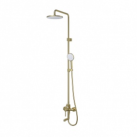 Проект в трендовом переосмысленном русском стиле, где гармонично соединены неочевидные предметы. Это дань уважения русской культуре, где традиционные декоративные мотивы гармонично переплетены с современной сантехникой. Стилеобразующая роль – у яркой рамы-наличника и плитки в стиле печных изразцов. Смесители в золотом цвете продолжают тематику, напоминая о сусальном золоте, тумба в оттенке натурального дуба с фрезеровкой привносит в интерьер тепло и уют, а белые аксессуары добавляют визуальной лёгкости.